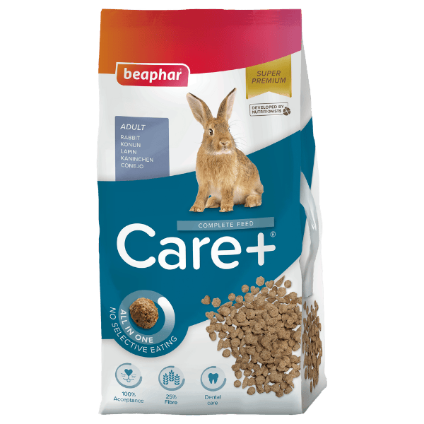 A Beaphar Care+ nyúleledel egy szuperprémium minőségű teljes értékű állateledel nyulaknak. A Beaphar Care+ nyúleledelben a különleges gyártási folyamat (a nagy nyomás és a magas hőmérséklet ) következtében a fehérjék könnyen emészthetőek, a táplálék tiszta és egészséges az alapanyagokban jelen lévő kórokozó baktériumok, penész és vírusok elpusztítása révén. Mivel a táplálék minden egyes extrudált darabja azonos összetevőkből áll, megelőzhető az egyoldalú takarmányozás, s biztosítva lesz, hogy az összes szükséges beltartalom elfogyasztásra kerül. A Care+ nyúleledel megfelelő kalcium-foszfor arányt biztosít az egészséges növekedéshez. A termékben lévő fehérjék gazdagok az izomfejlődéshez szükséges alapvető aminosavakban. A Care+ alacsony zsírtartalmú, megfelelő arányban tartalmaz omega-3 és omega-6 zsírsavakat. Az eledelben lévő természetes összetevők (Echinacea, Spirulina-alga, és Yucca Schidigera) felszívódását ásványi anyagok segítik. A szintén hozzáadott FOS (frukto-oligoszacharid), illetve MOS (mannan-oligoszacharid) az egészséges bélflóra fenntartásában segít.