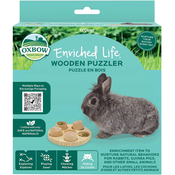 Az Enriched Life Wooden Puzzler egy kiváló minőségű, 100%-ban biztonságos, természetes fából készült etetőjáték, amely ösztönzi a kisállatot a felfedezésre, a játékra és a táplálékkeresésre. Természetes fa kialakítása szórakoztató elfoglaltságot biztosít, miközben támogatja a fizikai és mentális stimulációt.